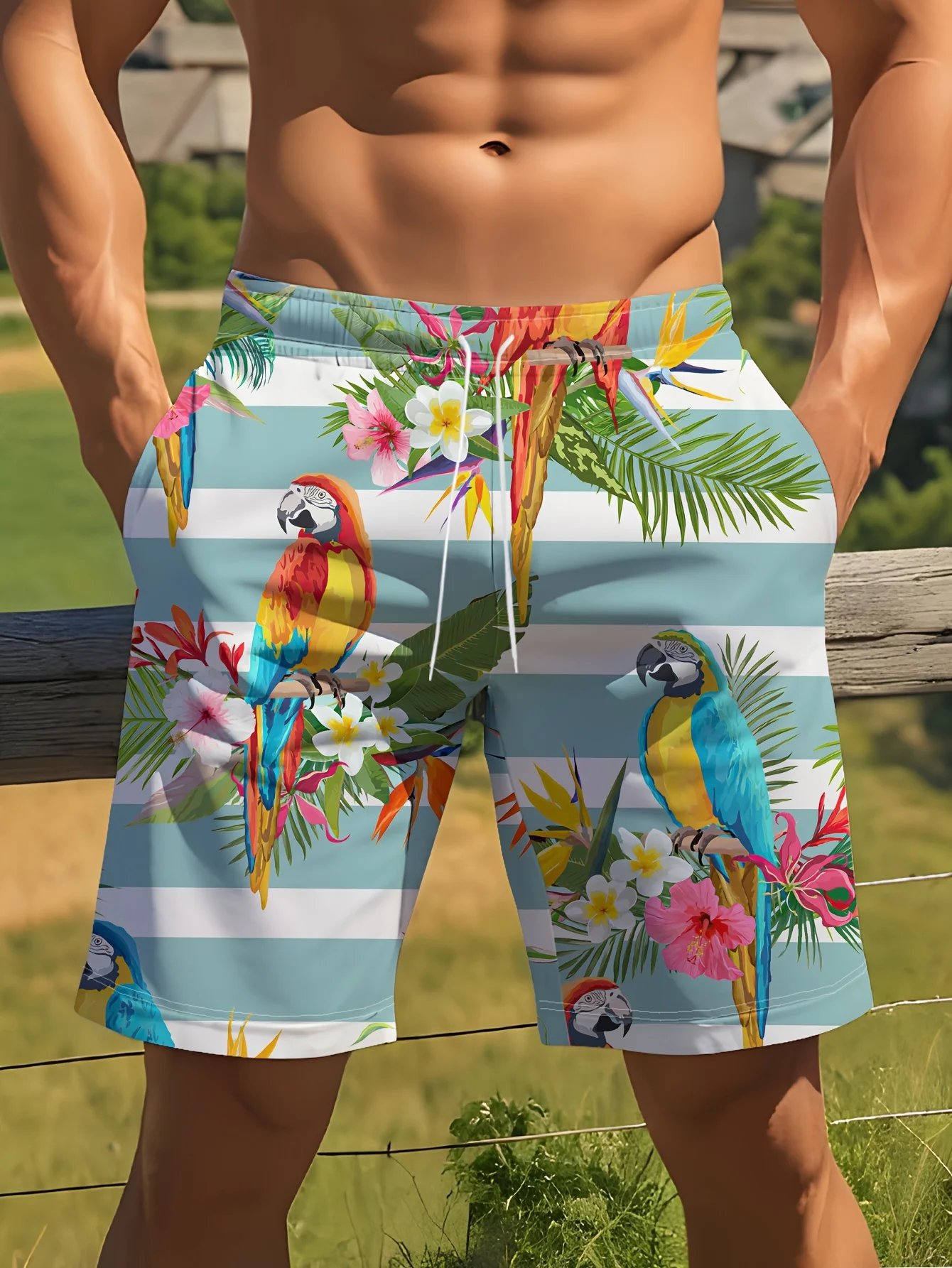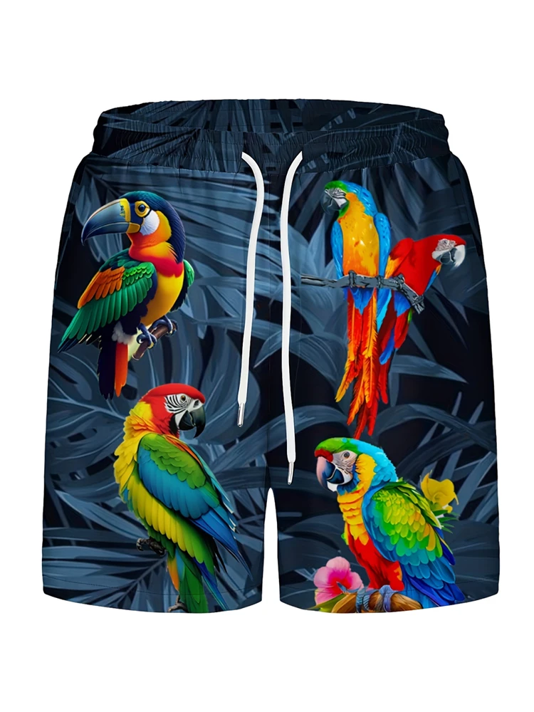 2025 new men's shorts 3D parrot print fashionable and sexy beach surfing shorts waterproof, quick drying, soft texture