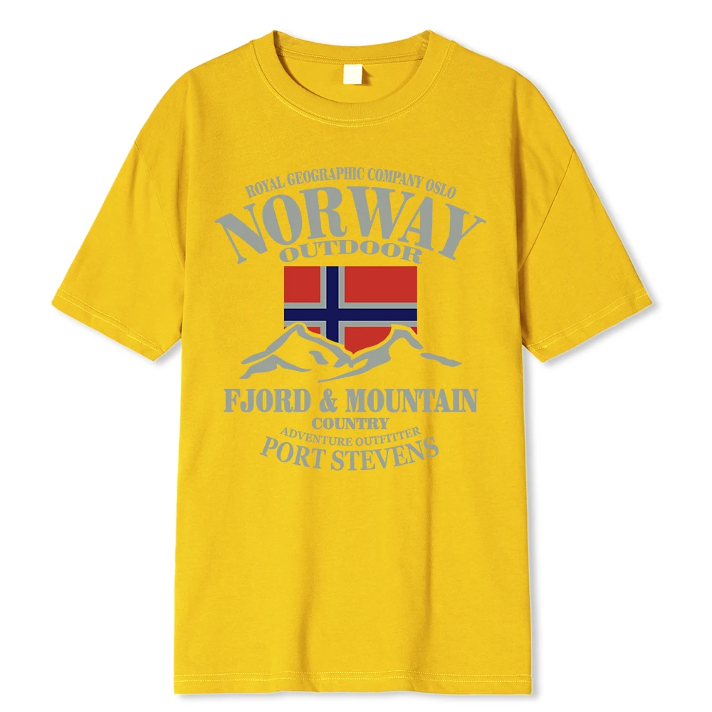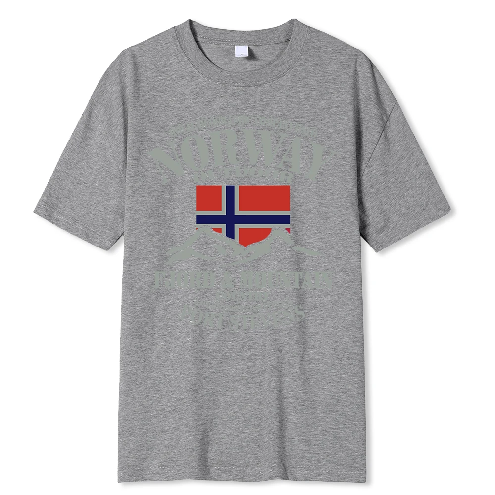 Summer Norway Flag Fjord Mountain T Shirt Crazy Hip Hop Men's Shirt Cotton Crewneck Plus Size Short Sleeve Funny T-shirts Male